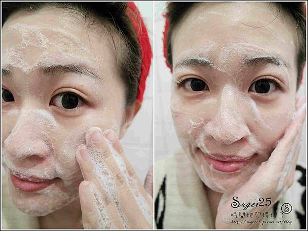 全臉搓揉~輕輕的劃圈按摩,每個地方都要洗到:))