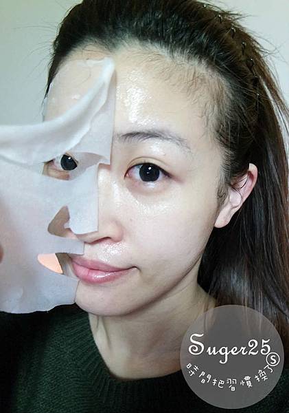 敷15~20分鐘拿下來,整個臉兒都還有滿滿的精華液唷!!!