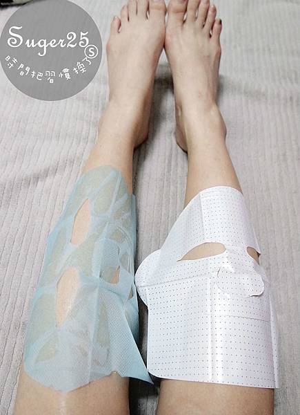 取下的白色珍珠紙&藍色面膜紙都還有殘留精華液,就拿來敷敷腳兒:))