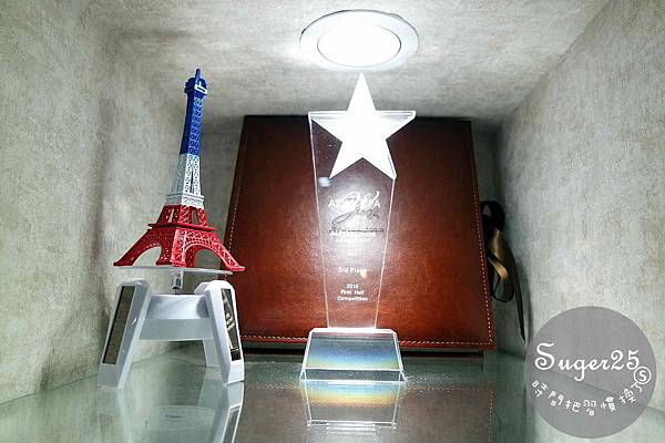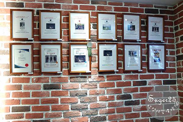 牆上掛滿得獎的獎狀!