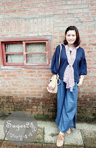 寬褲裙側面還有開衩,材質仿牛仔的布料,但~是很舒服又不會太熱的材質