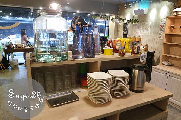 這裡不收服務費,採用自助式 裝水、拿餐具...等