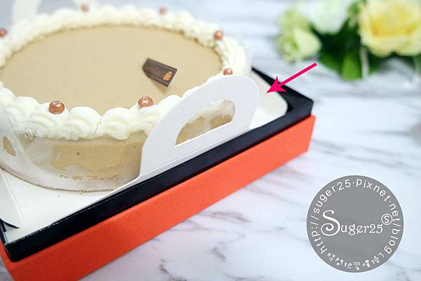 蛋糕旁邊還有小提把,相當的貼心,要拿起蛋糕也不怕會搞到~毀了蛋糕
