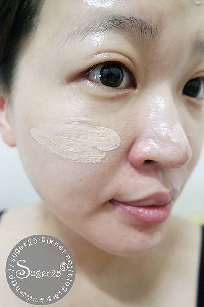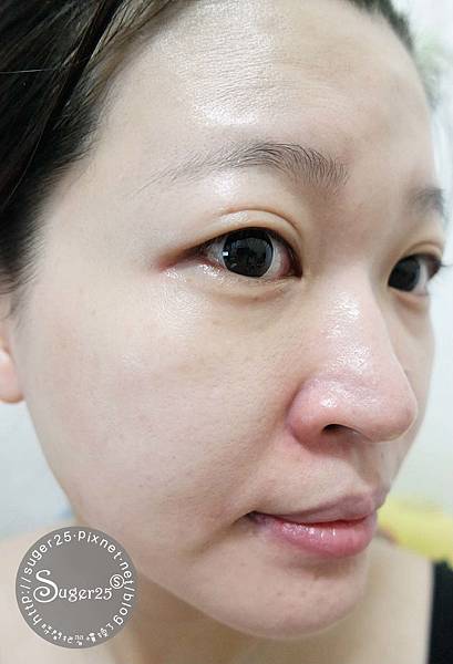換個白光拍拍,擦了這款防曬霜後,整個~色差都沒了,潤色效果還不錯!!
