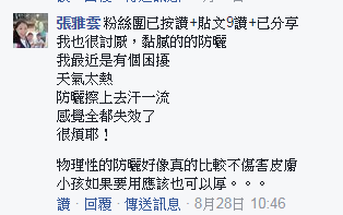 擦起來很清爽,一點都不像是擦了高防曬係數在臉上,完全沒有黏膩膩的感覺