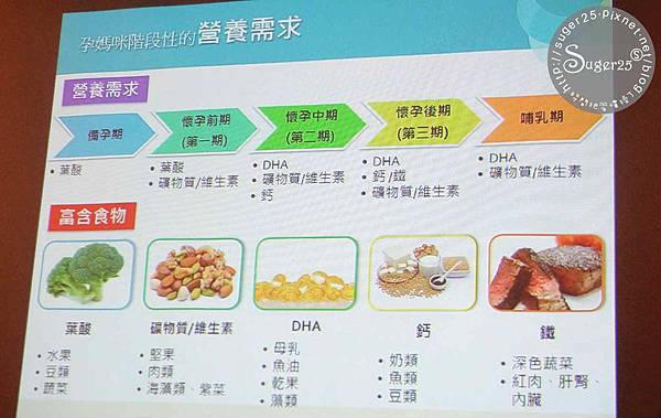 備孕期、懷孕前期、懷孕中期、懷孕後期、哺乳期
