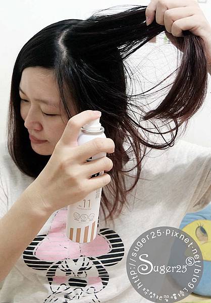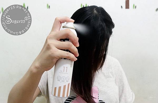 我先用梳子將頭髮梳順,在搖一搖瓶身~距離大約20公分噴噴