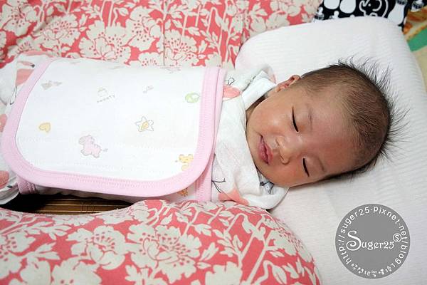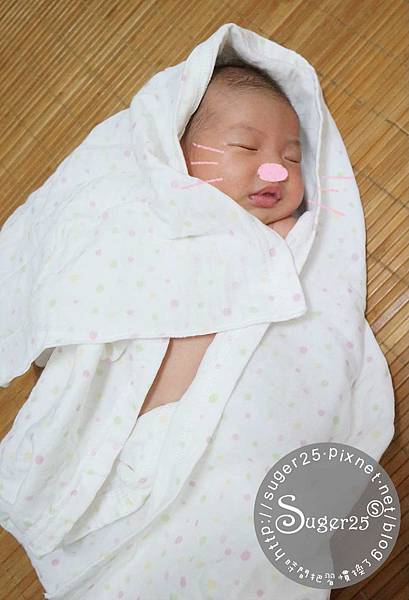 在月子中心都是用這種肚圍包住Mia,一開始覺得把她包起來好不人道喔!