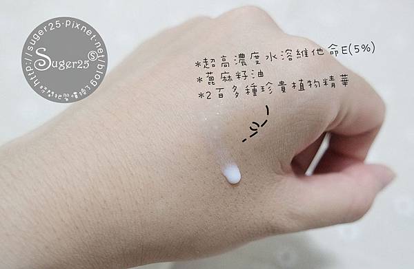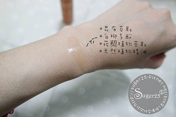 輕輕就可以抹開,質地帶點水乳狀,不像傳統的霜質地那樣厚重