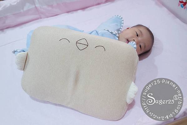 只有給Mia睡這小雞枕頭,頭型就圓滾滾了!!!!真的是~榮登媽媽心目中的夢幻枕呀!!!