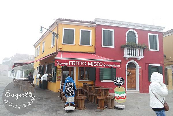 色彩繽紛的彩色島/蕾絲島->聖馬丁教堂->Da Romano墨魚麵(中)