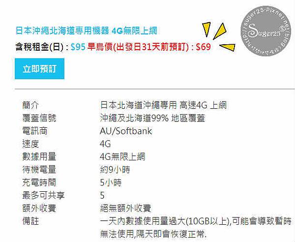含稅租金(日) : $95 早鳥價(出發日31天前預訂) : $69!!!!