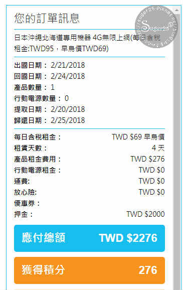 我選擇宅配要再加$150元,再出發前一天會收到wifi機