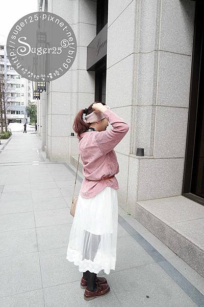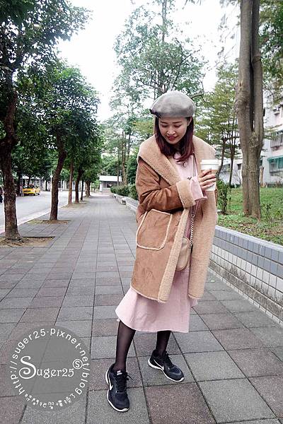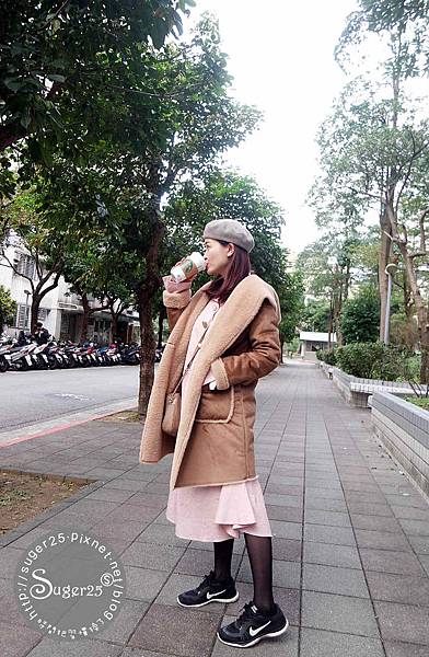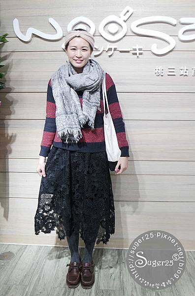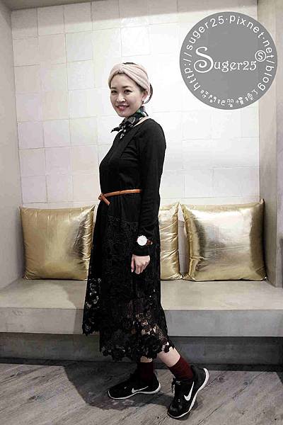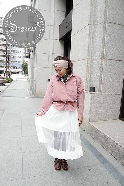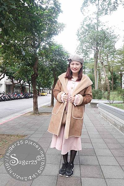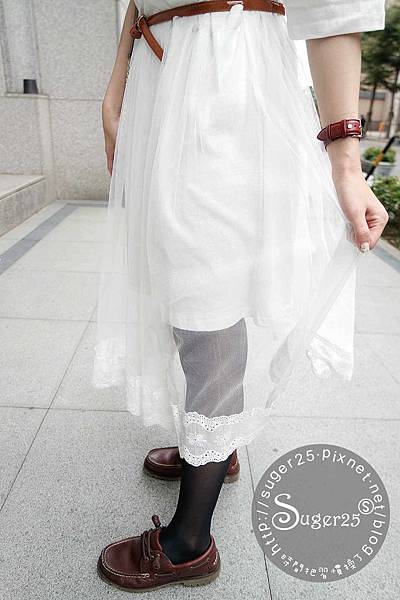 穿上外套~微露出來的蕾絲裙襬還真好看^^