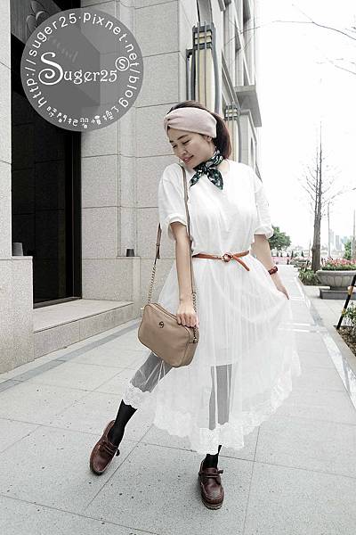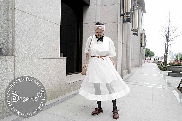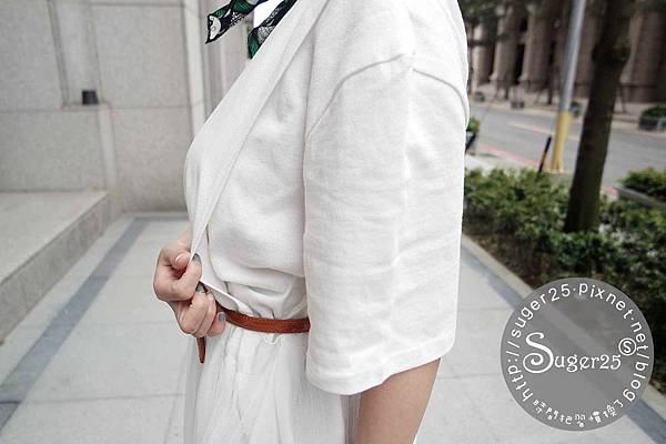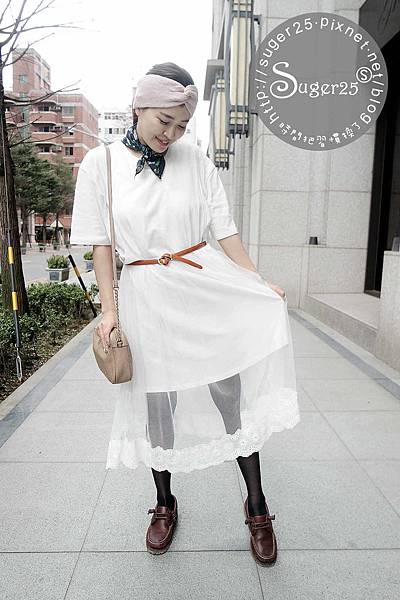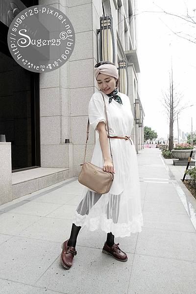 覺得白色有點小單調,我在脖子一樣搭上小領巾