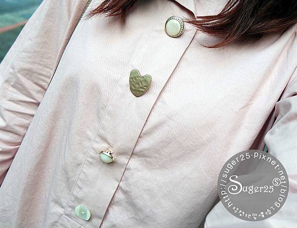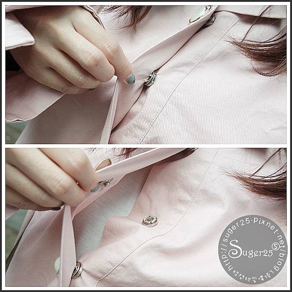 這款式釘扣,裡面還有一件白色的內裡,讓你穿起來像是穿兩件式,又不會輕易走光