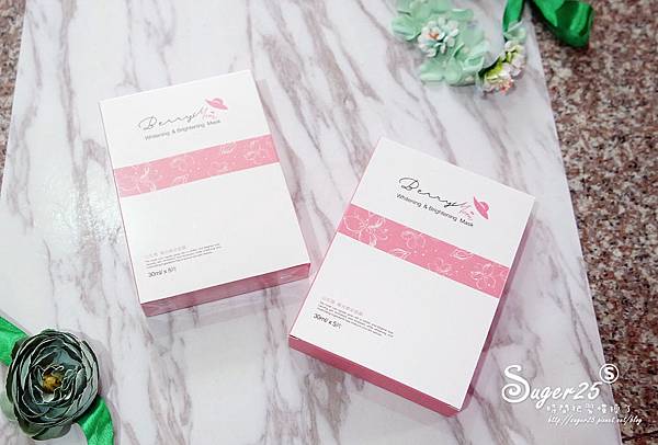 面膜的包裝為白色底,點綴花兒的低調奢華設計