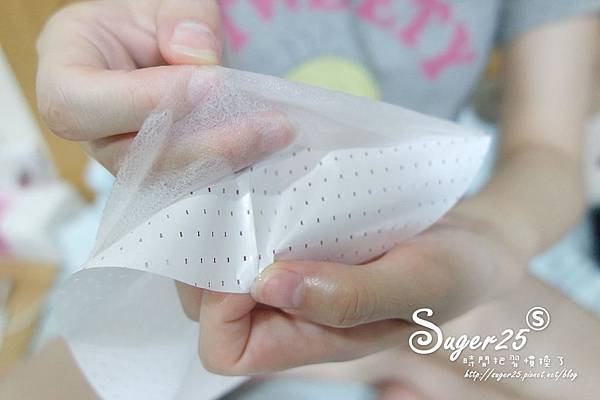 可以看到面膜紙超薄透但也吸收滿滿的精華液