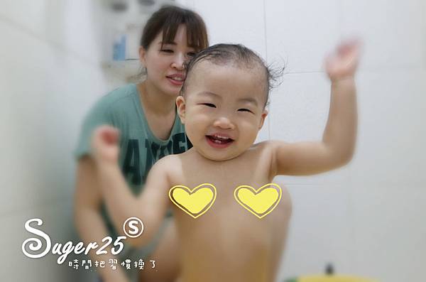 平常都是自己幫Mia小妞洗澡,之前還可以乖乖坐著