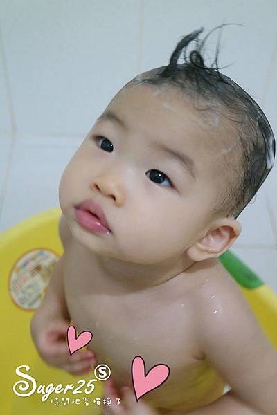 現在無法夾在腋下(<--有小孩的一定懂我在說啥咪!!)讓我洗頭,喜歡站著就讓他站著吧~~