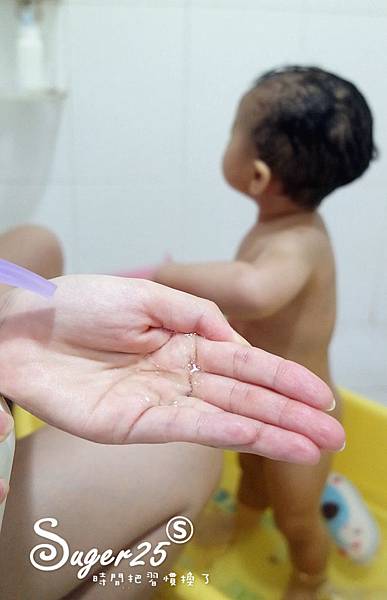 我大約按壓2次使用到寶寶專用沐浴球就可以使用全身摟!!!!
