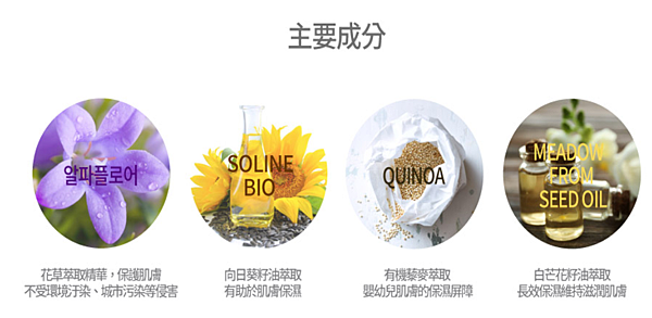 主要成分有花草、向日葵籽油、有機藜麥、白芒花籽油萃取:))