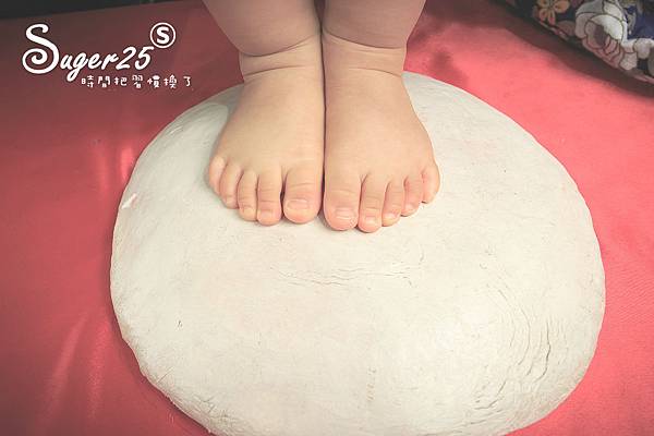 讓孩子踏在一升餅上,祈願他能腳踏實地、堅定前行