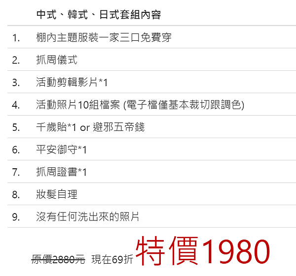 這間價錢超級討喜,不到兩千元就可以有抓周儀式還有幫你拍全家福