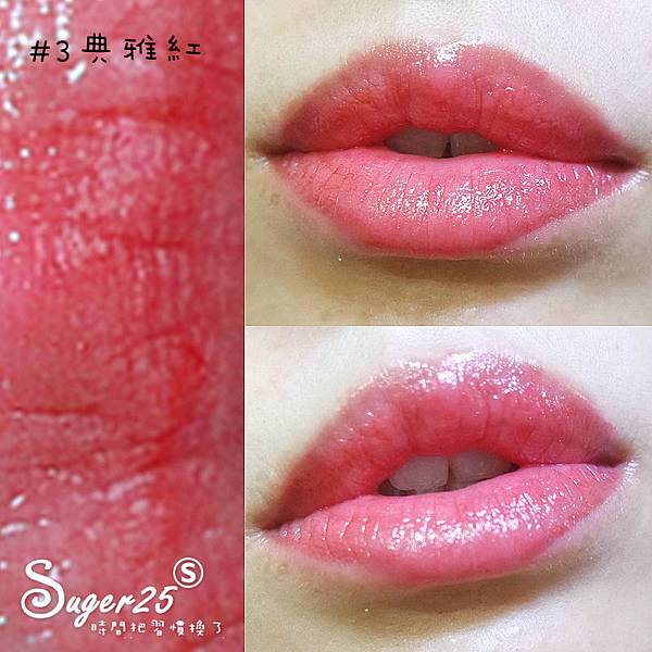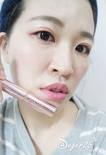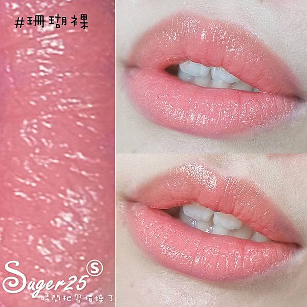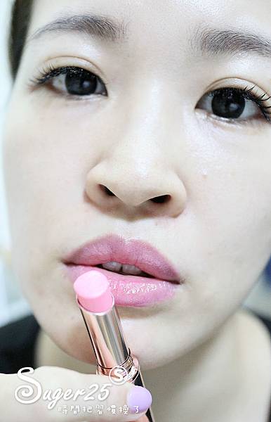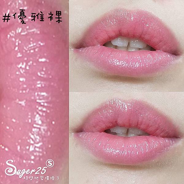這個顏色有非常細緻的亮粉,讓唇部一直保持著水潤的光澤感,又不會顯得廉價、俗氣喔!!