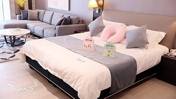 房間景觀視野佳、舒適羽絨被、乳膠記憶枕、雙人沙發組、提供美樂醫療級雙邊電動吸乳器、蒸氣消毒鍋