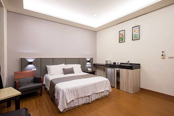 14坪寬敞空間,採用頂級綠傢具及設施、雙人加大獨立筒床墊、舒適羽絨被枕,每房皆有雙層氣密大開窗,