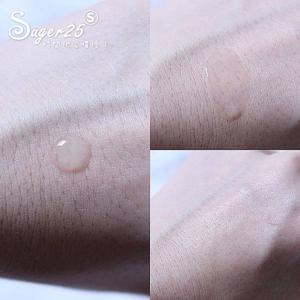 剛擦的時候好像有點稠~但推開小小按摩一下吸收後,就完完全全滲透到肌膚底層