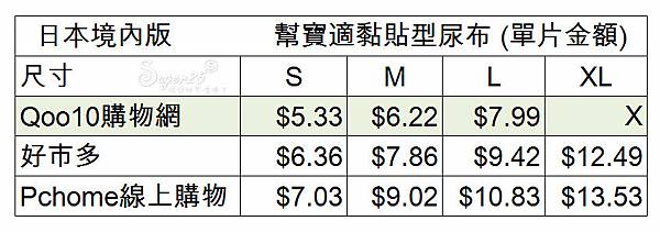 以幫寶適黏貼型尿布 日本境內版 (單片金額)為主