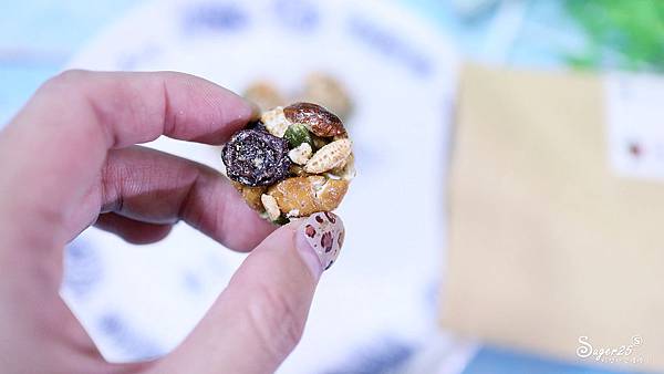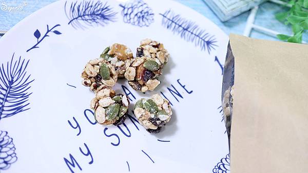 由蔓越莓、葡萄乾、腰果、杏仁果、糙米、南瓜子組合成這個零食兒
