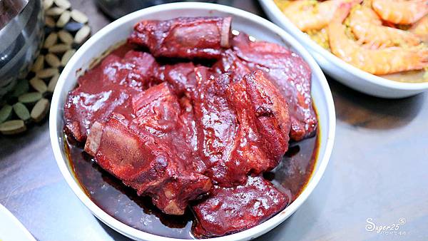 江浙三大名菜之一無錫排骨其火候掌握為重要訣竅,紅色醬汁下有著軟嫩肉質且鹹中帶甜
