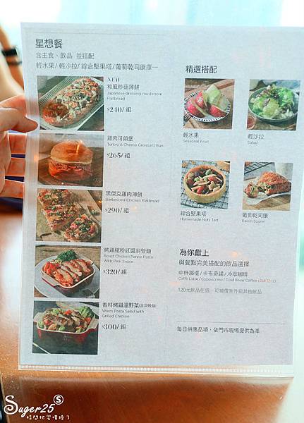 星點餐組合 包含主食+飲品 $120元飲料任選 + 四選一 輕水果/輕沙拉/綜合堅果塔/葡萄乾司康