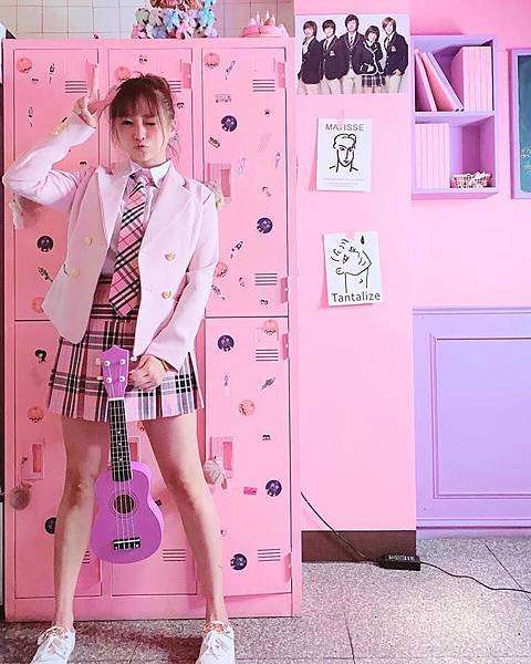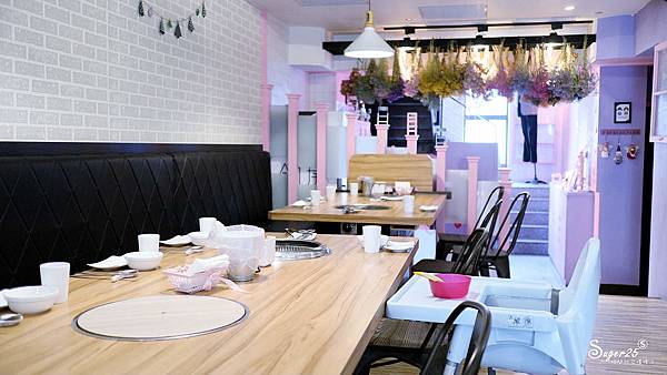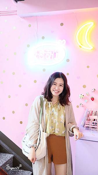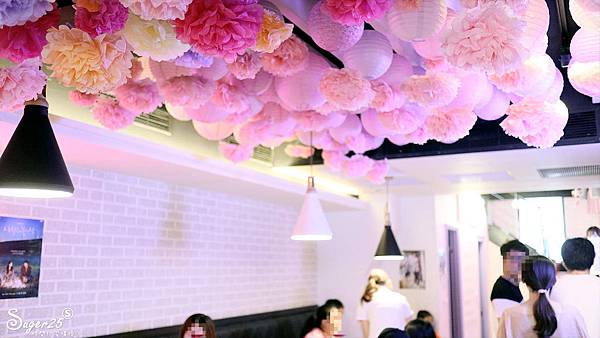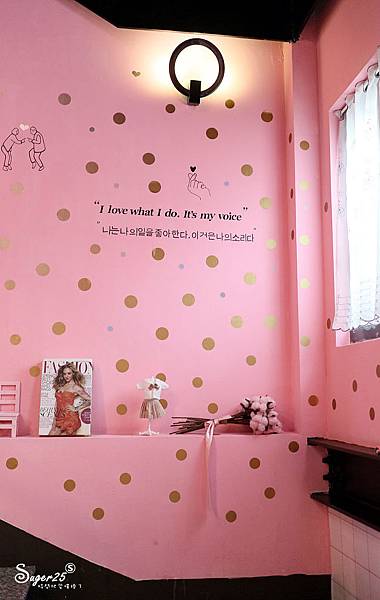 我們坐二樓,走上樓的樓梯都是粉紅色的很夢幻
