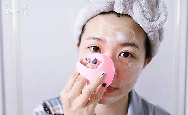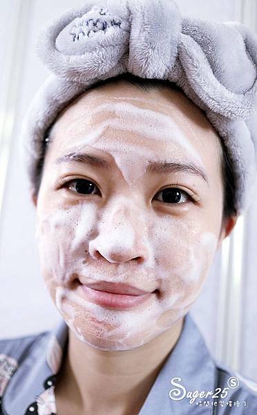 2 直接將泡泡洗面乳用在臉上,先搓揉一下再使用魔女機