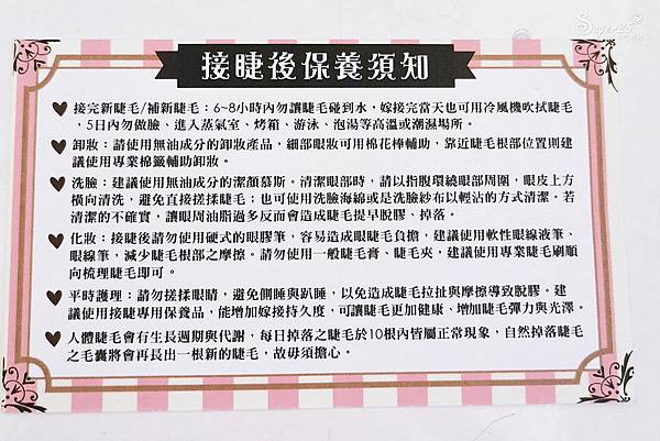 大概一個小時不到就接完了,速度真的是很快,接完美睫師會交代一些嫁接保養的常識