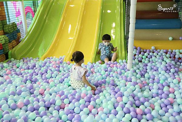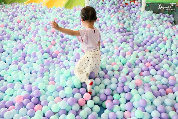 最吸睛的就是這馬卡龍球池,有粉藍、粉紫、粉紅的球