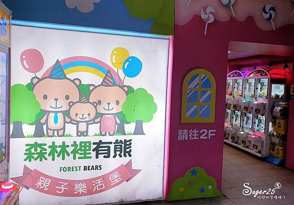 一樓就是夾娃娃機店,走進去有指標說請往二樓就是森林裡有熊親子樂活堡