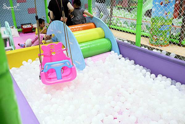 裡面有大型溜滑梯球池、盪鞦韆、彈跳床、水晶沙坑等11個主題遊戲區