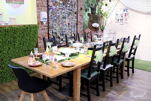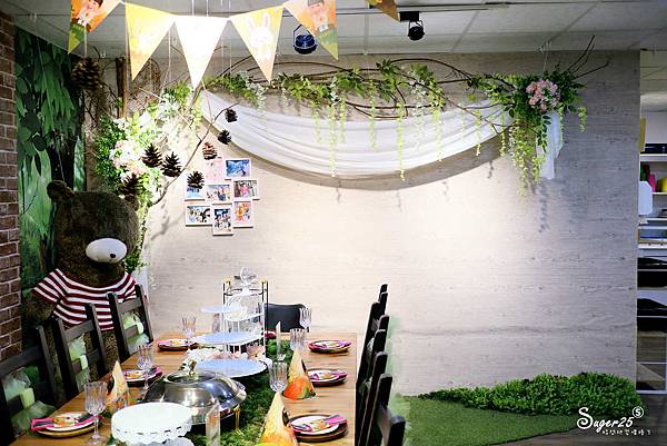 會佈置場地、做影片、帶活動、供應餐飲,專屬寶貝設計的裝飾小物像是慶生帽,大約20人
