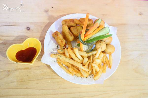 雞塊、薯條、洋蔥圈、熱狗球、QQ球、蔬菜棒