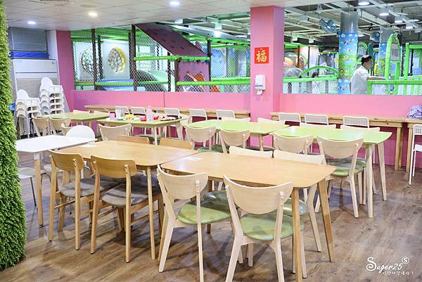 位子蠻多的,原本我們選四人座位後來改去,靠近遊戲區的座位,可以坐著看小孩在遊戲區