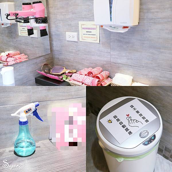 廁所有吹風機、毛巾、梳子、護墊、酒精...等備品相當的貼心