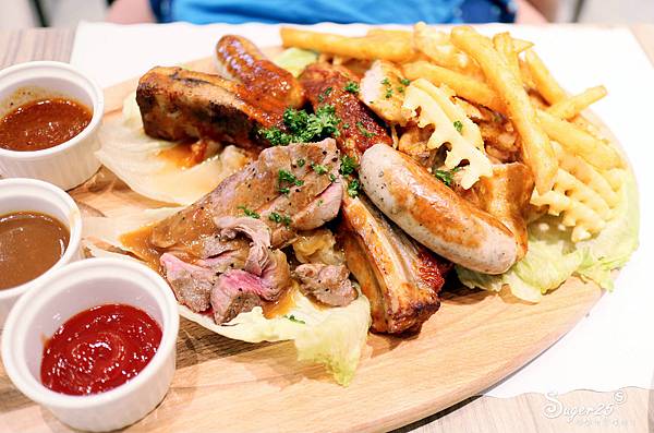 牛排6盎司、豬肋排、雞腿排、德式香腸