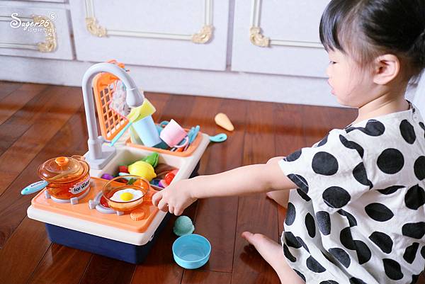 平常我們都會阻止小孩碰水更別說是讓她''洗碗''現在有了這組盟石玩具,讓小妞兒洗碗洗得很開心