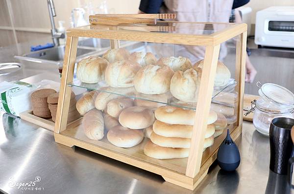 餐點部分有咖啡、飲品、麵包、甜點等,樓下有個木質小櫥窗可以看到當天有哪些麵包