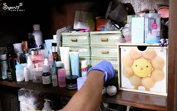 洗手台上方全部瓶瓶罐罐的,全部會移開擦掉灰塵,再擺放整齊
